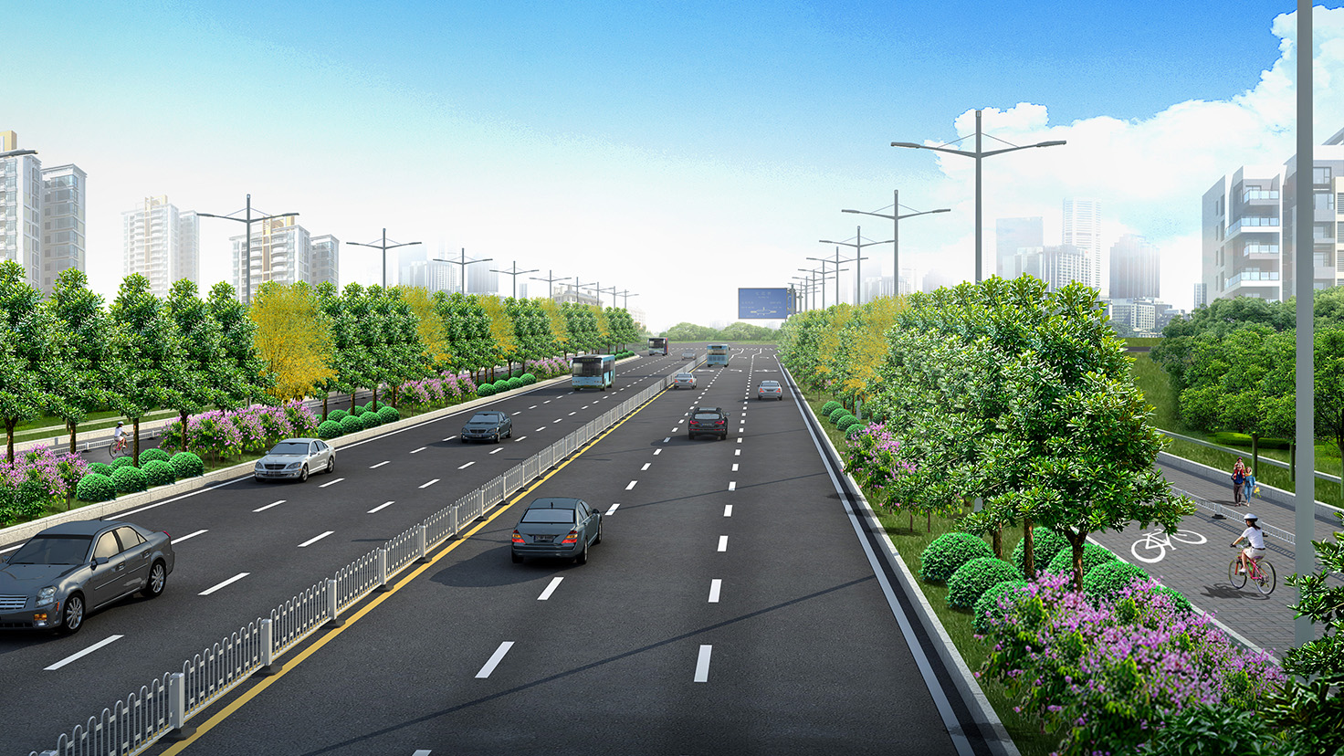 项目规模:城市主干道,设计速度60km/h,路宽55米,总长10Km。